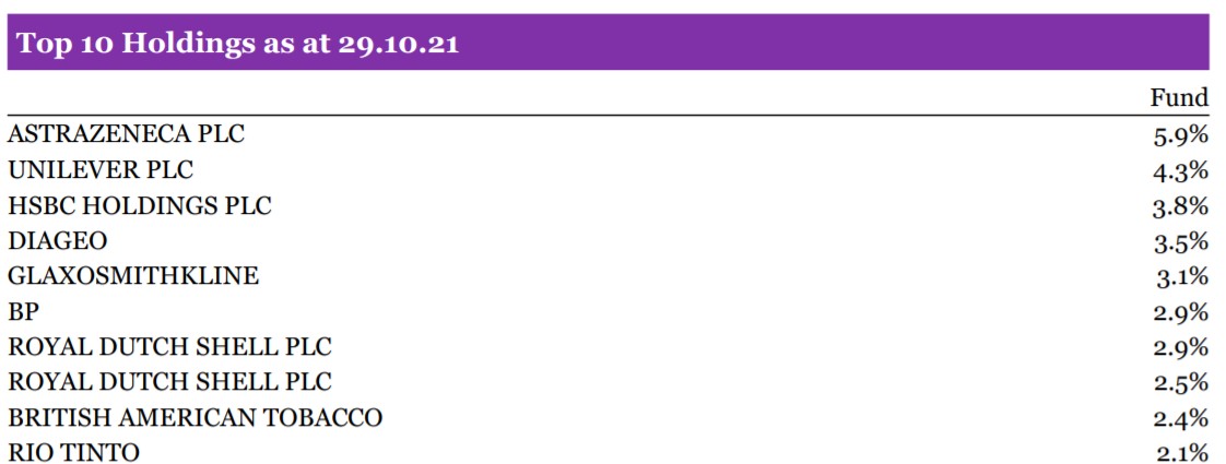 Top 10 holdings and sector weightings are remarkably similar to a FTSE 350 tracker (iShares 350 UK Equity Index Fund [7])