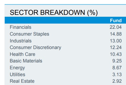 This fund is classified as a sustainable investment fund by Morningstar, presumably due to it ‘incorporating responsible investment and environmental, social & governance insights into the investment process.’  And seeking ‘to achieve carbon intensity of at least 10% and up to 30% lower than that of the Index whilst also considering a company’s ability and willingness to transition and contribute to a lower carbon economy’.[6]