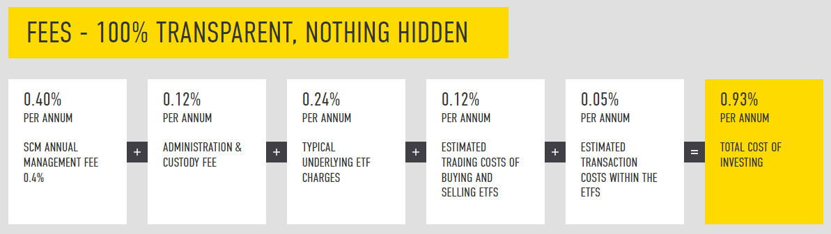 At SCM Direct, we believe clients should have 100% transparency around fees when opting for our investment products. That’s why we have a dedicated Fees page displaying the full breakdown of costs & charges, reassuring clients that there are no hidden costs, initial charges or exit penalties.