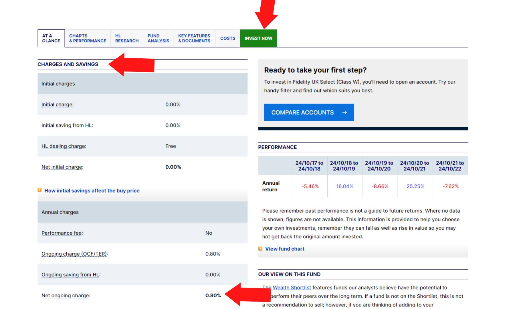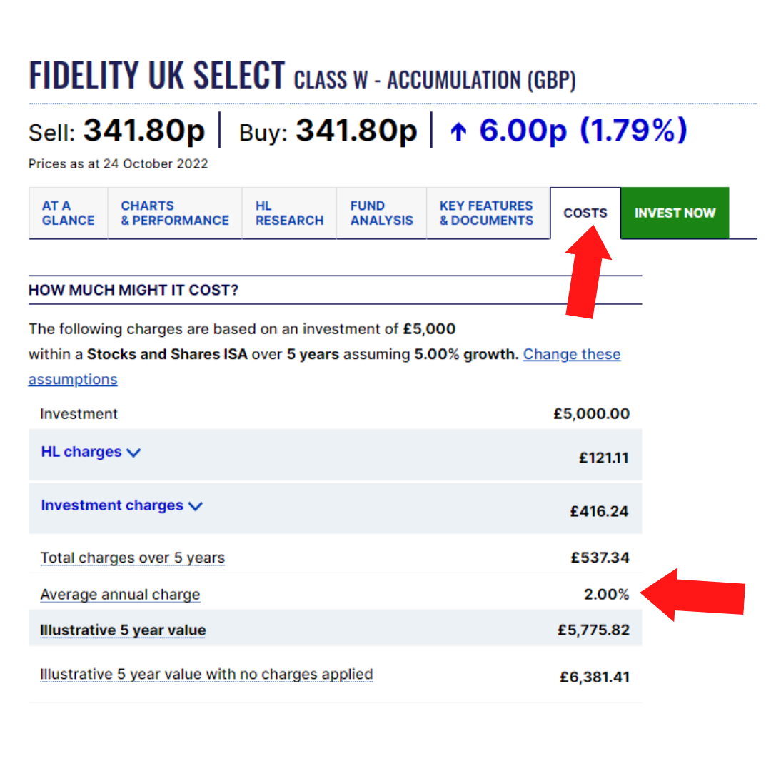 The £574m Fidelity Select fund has ongoing charges of 0.8% per annum, but add in the transaction costs within the fund of 0.73% per annum and the Hargreaves platform charge of 0.45% per annum, the total cost is 1.98% which is 2.5x the fund cost alone! But only if you go to the separate costs tab would you find the total is not 0.8% but 2% per annum.